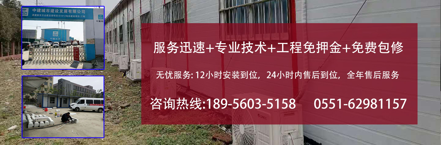 安裝人員經(jīng)驗(yàn)豐富,技術(shù)熟練。中為公司始終保持“服務(wù)第一,效益第二”的經(jīng)營理念,對(duì)空調(diào)使用過程中出現(xiàn)故障,堅(jiān)持12小時(shí)解決問題,讓每一位顧客滿意!特別是工地,如果空調(diào)壞了,夏天室內(nèi)溫度接近45攝氏度無法辦公和休息。公司從事空調(diào)租賃以來,一直堅(jiān)持返修不過夜,贏得了廣大顧客的充分信賴!。 服務(wù)電話:189 5603 5158 (0551)6298 1157